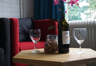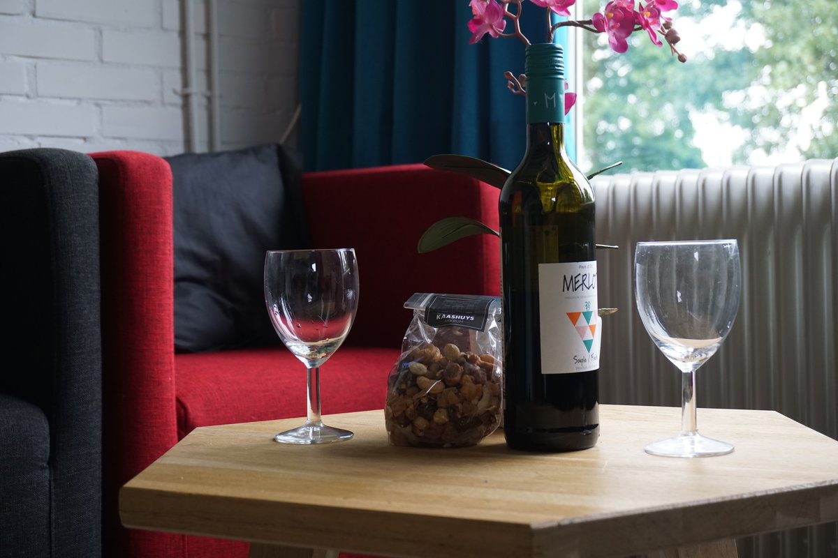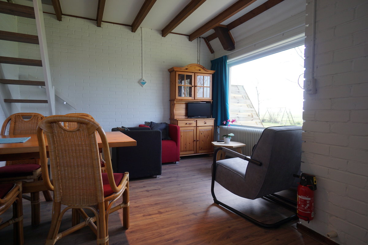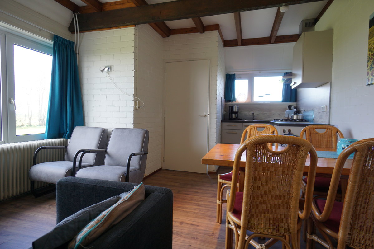 Gemütliches Eck-Ferienhaus für vier Personen mit Sicht auf den Kinderspielplatz, Jachthafen und das Koevordermeer in der Ferne. Das Ferienhaus ‚Sweltje' ist ein komfortables Appartement für vier Personen. Im Erdgeschoss befinden sich ein Wohnzimmer mit Sofa und zwei Stühlen sowie eine voll ausgestattete Küche mit einem Esstisch.