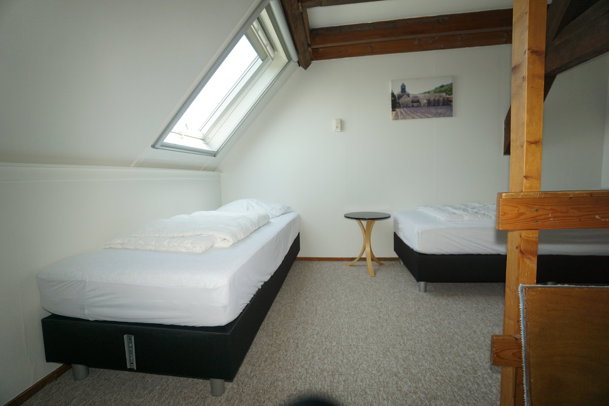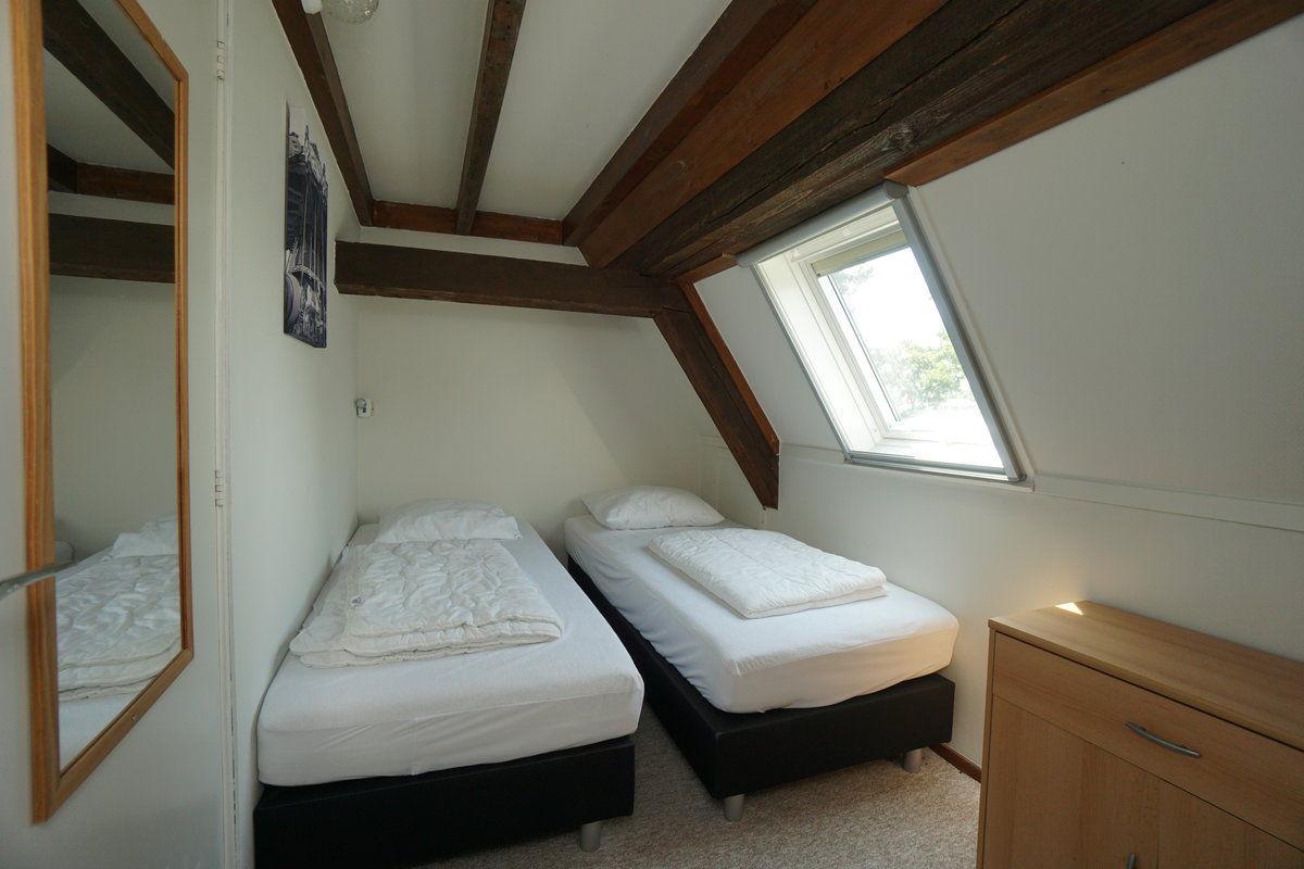 Im Obergeschoß befinden sich zwei Schlafzimmer mit jeweils zwei Einzelbetten.