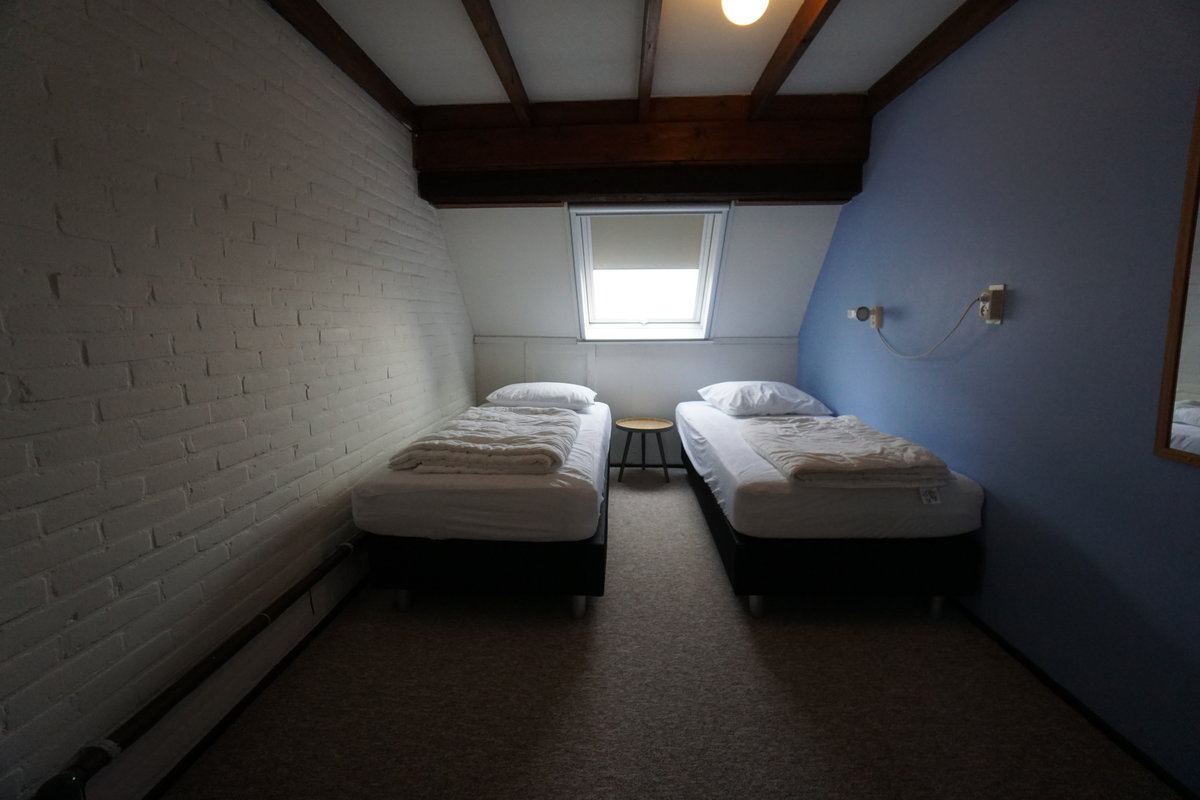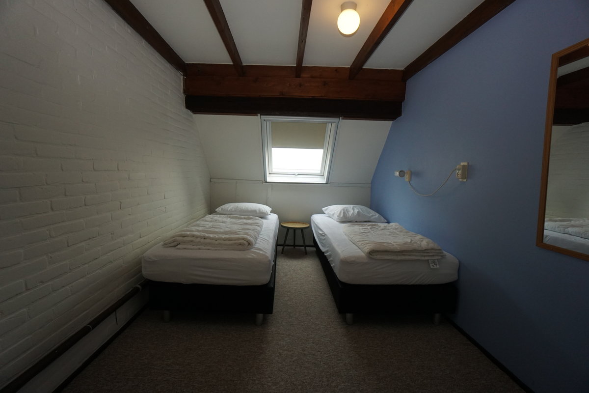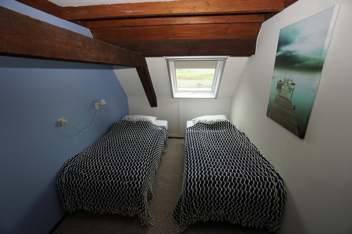Im Obergeschoss befinden sich zwei Schlafzimmer. Das eine Schlafzimmer hat zwei Einzelbetten und das andere Schlafzimmer hat vier Einzelbetten.