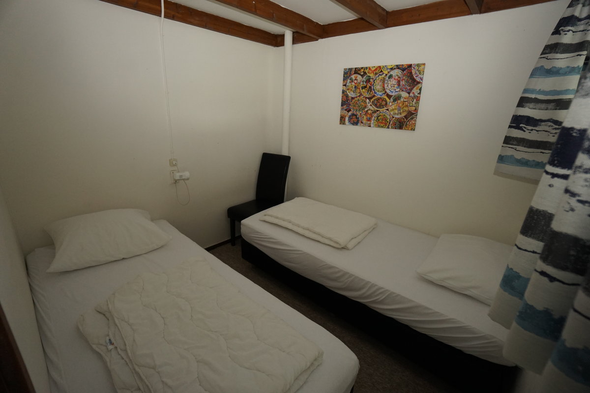 Im Erdgeschoss befindet sich noch ein Schlafzimmer mit zwei Einzelbetten. Im Obergeschoss befinden sich zwei Schlafzimmer, eins mit zwei Einzelbetten und eins mit vier Einzelbetten.