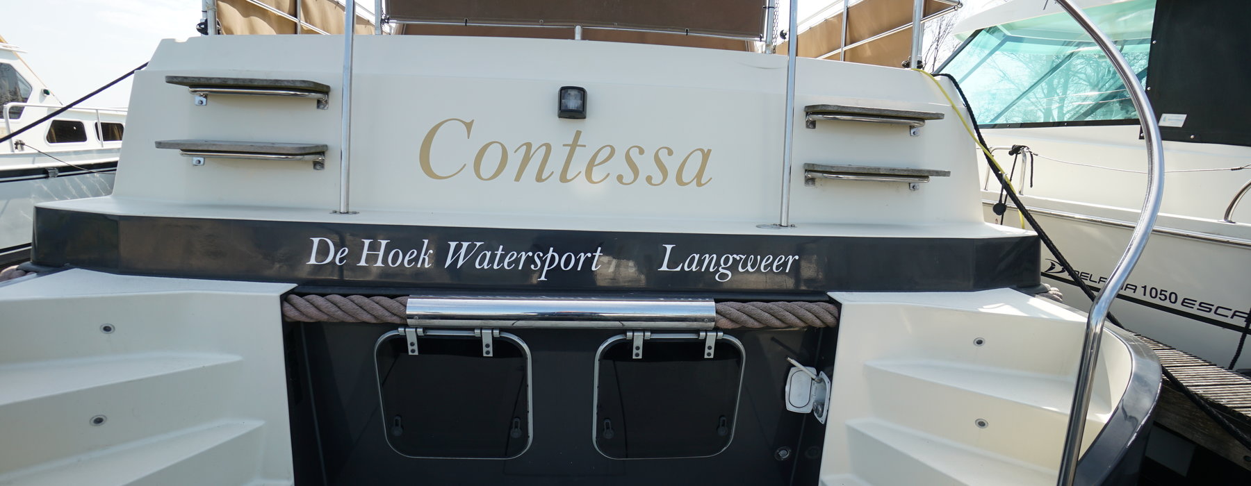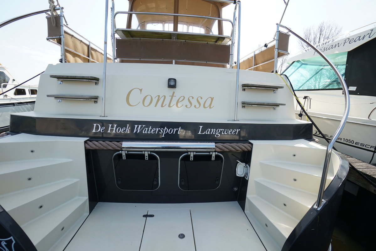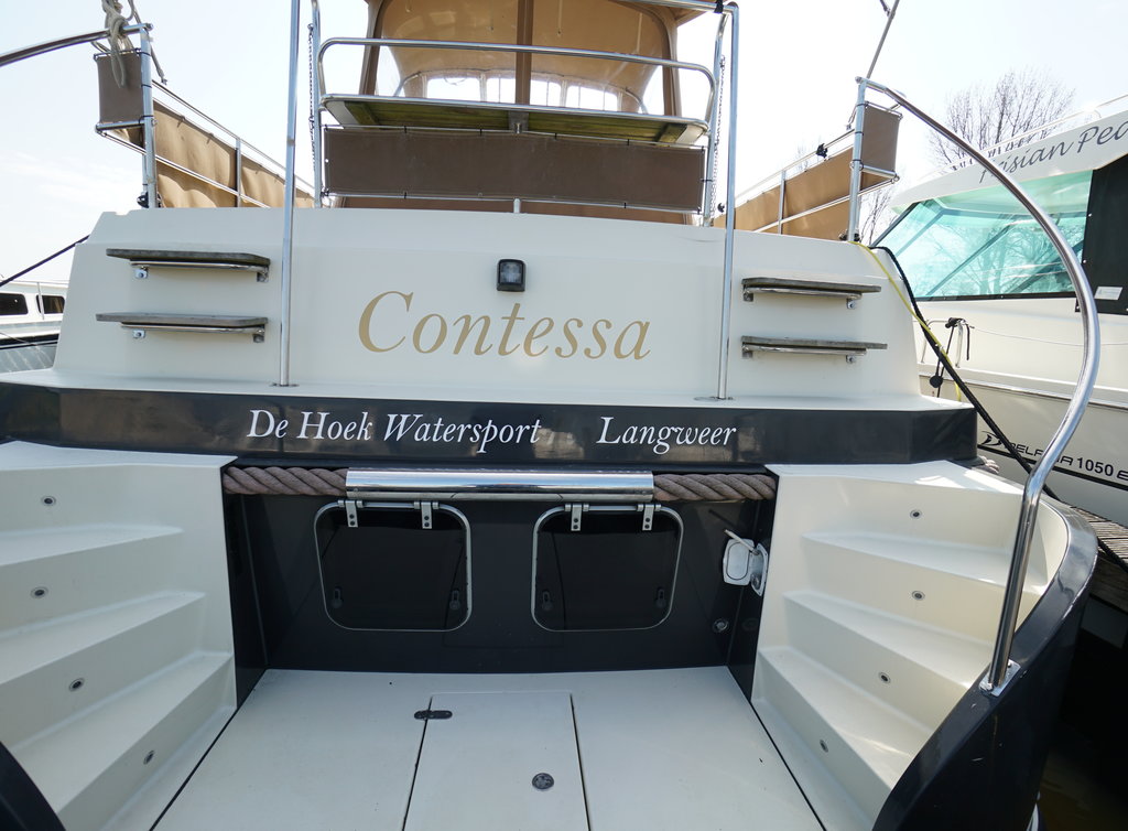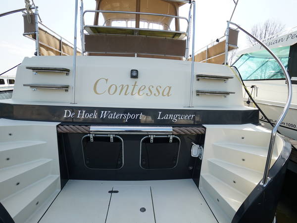 Motoryacht Contessa ist eine schöne moderne geräumige Yacht für 8 bis 10 Personen. Mit einer Länge von 13.30 Metern und einer Breite von 4,20 haben Sie Zugang zu einem großen, geräumigen Wohnraum, in dem das Schiff voll ausgestattet ist. Für jede erfolgreiche Kammer gibt es eine private Sanitäranlage (3 x toilete & 2 X Dusche) , so dass das Boot die Privatsphäre bietet, die Sie benötigen. Von der obersten Steuerung aus haben Sie einen weiten Blick auf das Schiff und sind der perfekte Ort, um es in Ruhe zu genießen. Das Schiff ist sehr einfach zu navigieren, da es mit einem Buch und einem Heckstrahlruder ausgestattet ist.