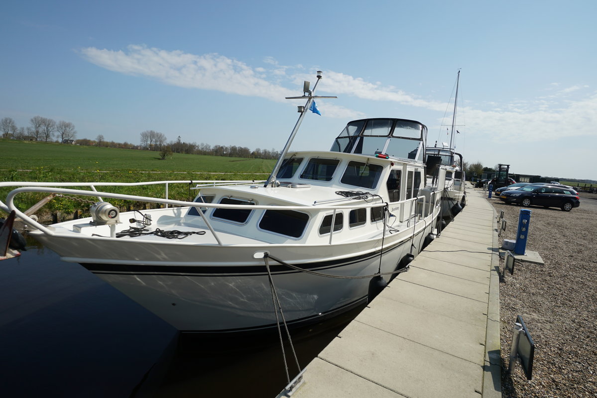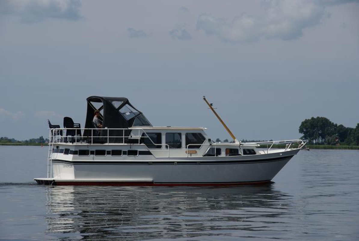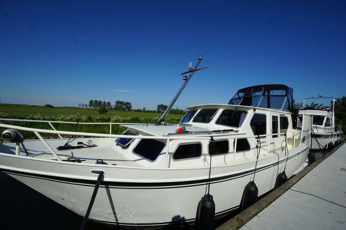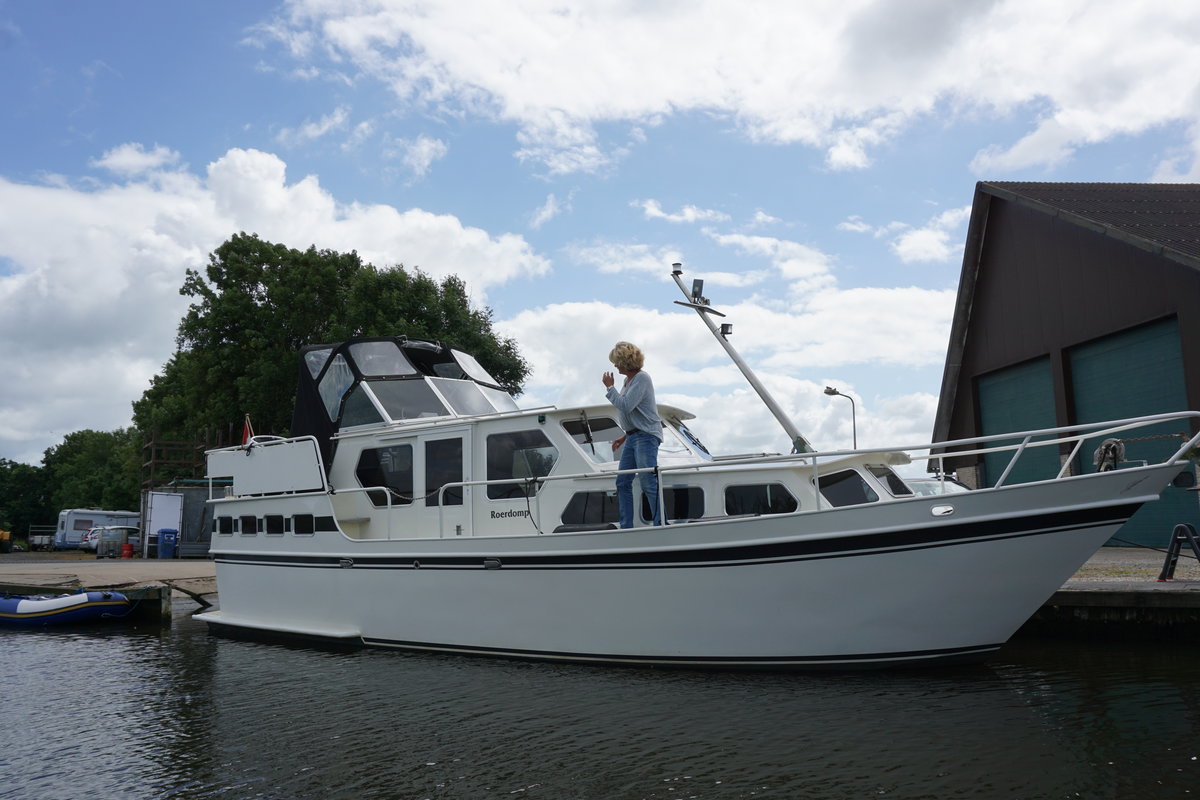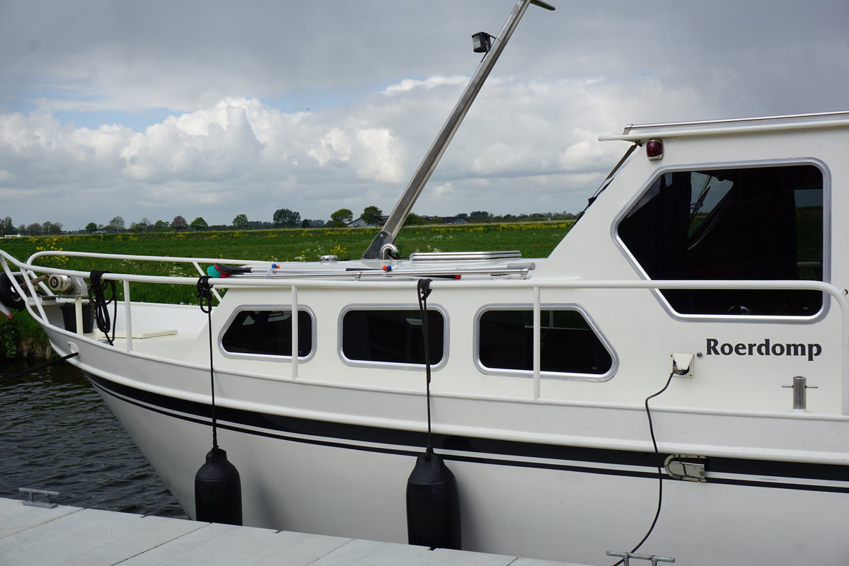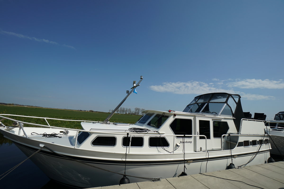 Das Motorboot Roerdom eignet sich mit seinen 11,5 Metern für 6 bis 8 Personen. Mieten Sie jetzt dieses auffällige Boot und verbringen Sie Ihren nächsten Urlaub auf dem Wasser der friesischen Seen. Vermietung 6-8 Personen Motoryacht ‚Roerdomp’ im friesischen Seengebiet Gruno 11.5 de Luxe