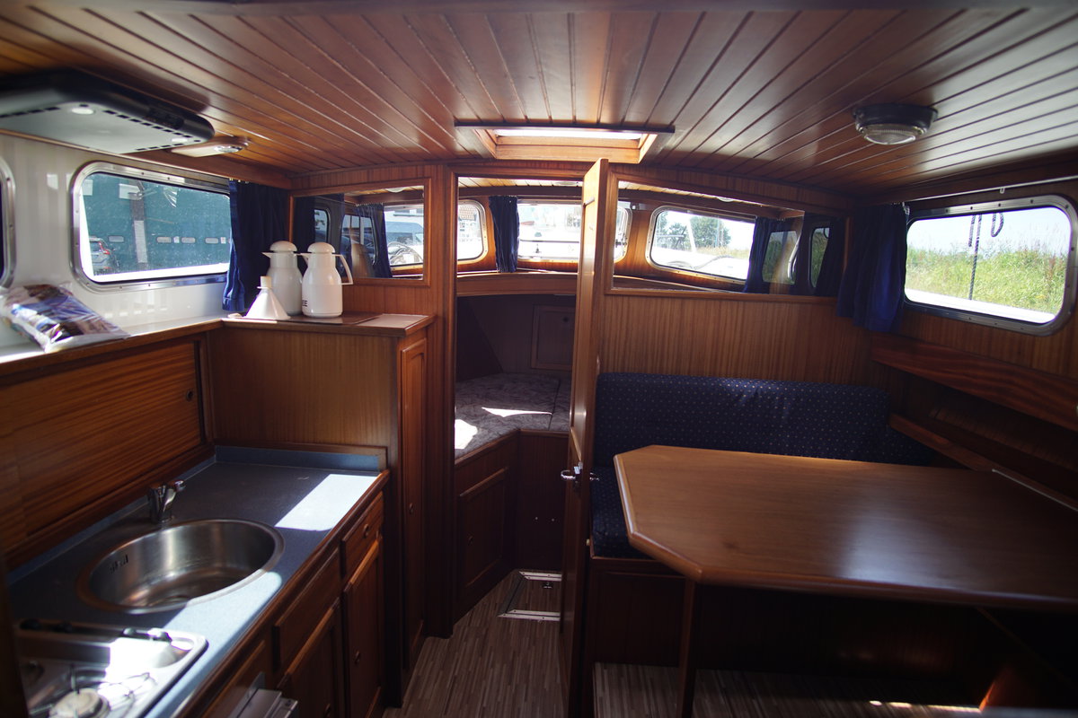 Die "Roerdomp" ist eine wunderschöne und vor allem geräumige Yacht, ideal für eine große Familie oder Gruppe, die einen Bootsurlaub auf den friesischen Seen und darüber hinaus genießen möchte. Die Yacht verfügt über 2 Schlafkabinen, jede mit 2 Einzelbetten (Etagenbett) und einem Doppelbett, sowie eine zusätzliche Kabine mit einem Doppelbett. Durch das Umklappen der Dinette im Salon kann zusätzliche Schlafgelegenheit geschaffen werden.