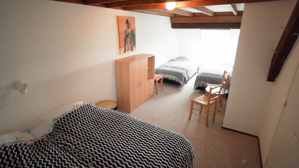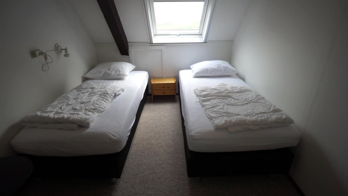 Im Obergeschoss befinden sich zwei Schlafzimmer. Das eine Schlafzimmer hat zwei Einzelbetten und das andere Schlafzimmer hat vier Einzelbetten.