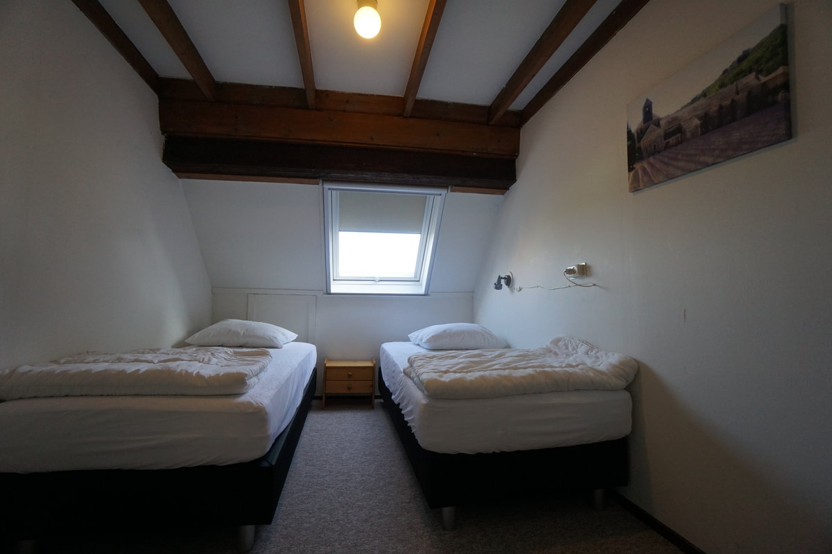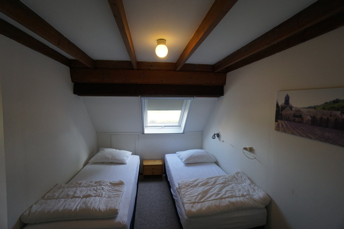 Im Obergeschoss befinden sich zwei Schlafzimmer. Das eine Schlafzimmer hat zwei Einzelbetten und das andere Schlafzimmer hat vier Einzelbetten.