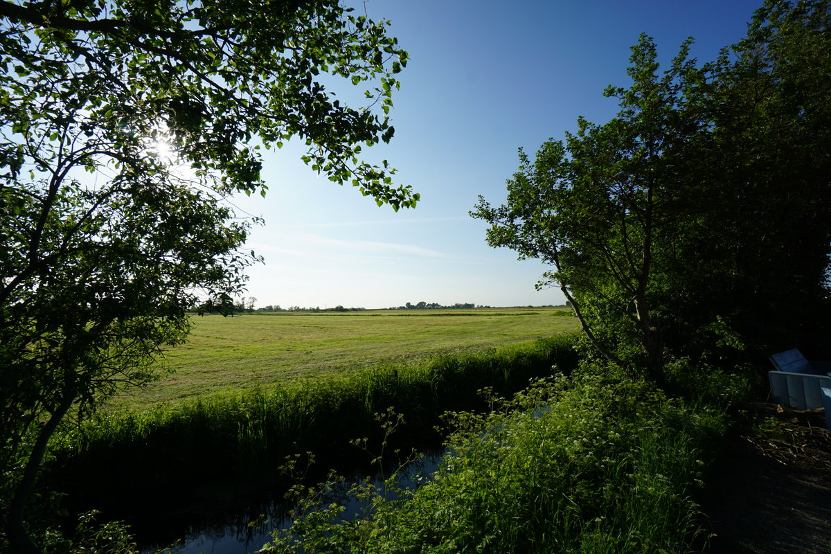 Dieses schöne Ferienhaus verfügt über eine sonnige Südterrasse mit einem Blick auf die friesische Landschaft und das Koevordermeer in der Ferne.